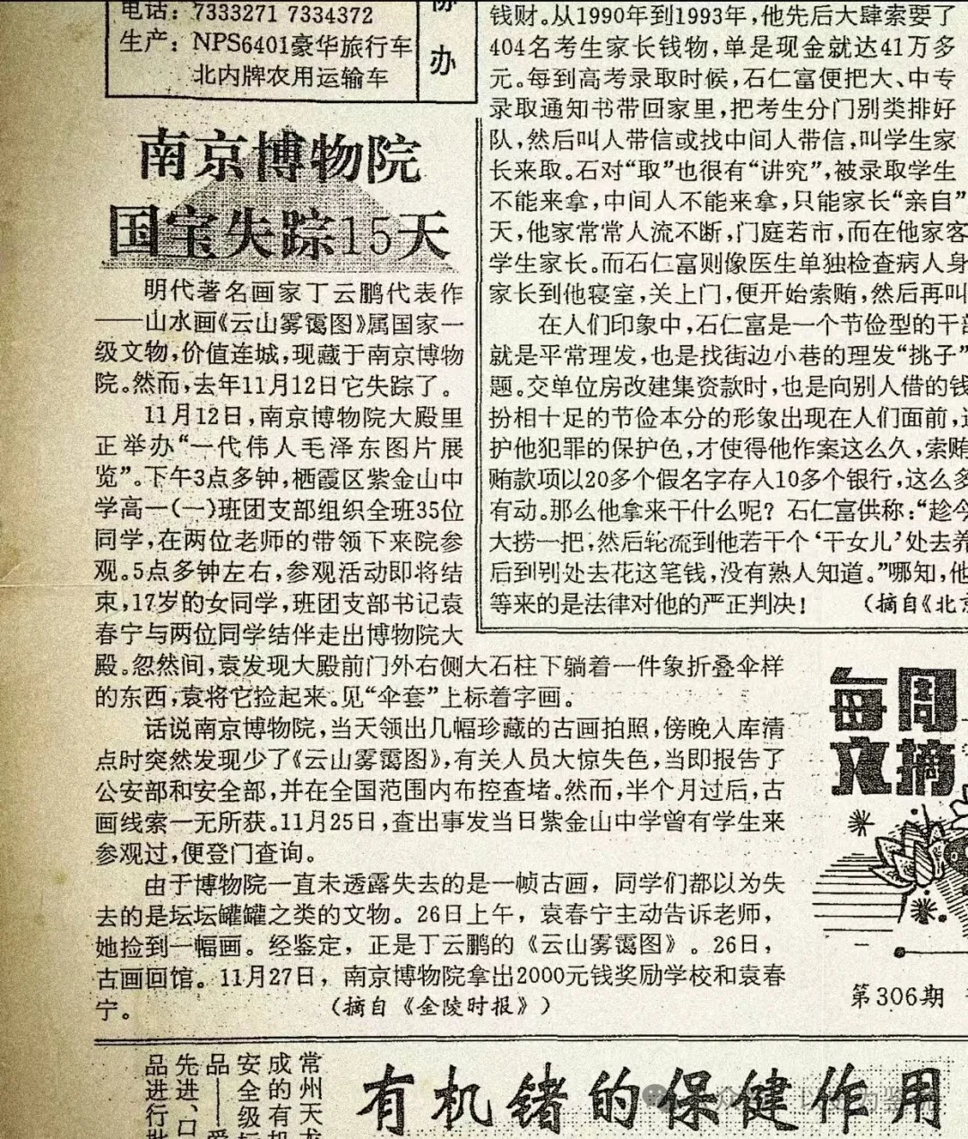 由于博物院一直未透露失去的是一幅古画,同学们都以为失去的是坛坛罐罐之类的文物。