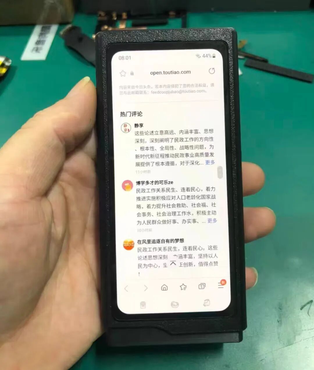 那就应该是用三星手机改的,但S10排除在外,因为S10是曲屏,这改装机器是直屏,最后实在猜不出原始机型号。