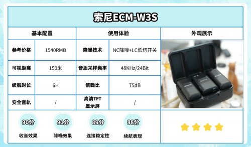 搭载高信噪比咪头,支持48kHz/24Bit数字录音,连接索尼相机时能传输纯净数字音频,室内口播人声细腻无底噪,安全音轨功能可同步录制低20dB备份,避免高声爆音损失。低切滤波+DSP降噪能滤除空调低噪与轻微风噪,但短板明显:仅单档降噪无法适配复杂场景,闹市中车流声抑制不足;全指向特性易收录环境杂声,多人场景主声源模糊;3.5mm外接麦接口虽拓展性强,但接入第三方麦时偶尔出现兼容性问题,音质波动明显。
