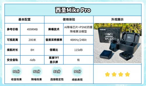 西圣 Mike Pro发射器仅15g,磨砂机身搭配可旋转背夹,夹在衬衫领口稳固不晃,长时间佩戴无坠感,跑动拍摄也不易移位。标配双转接头,手机、相机即插即用,适配便捷。
