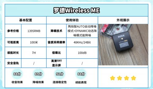依托IV系列无线传输系统,200米内抗干扰能力较强,复杂环境也不易断连。发射器单次续航7小时,满足半天拍摄够用,但充电盒需额外选购,外出补电不便。Type-C接口兼容性广,可直连相机、手机和电脑。但无屏幕设计,电量和连接状态全靠LED灯判断,强光下辨识度低;导出参数需依赖RØDE Central软件,流程比直接读取繁琐,且Lightning转接头需单独购买。