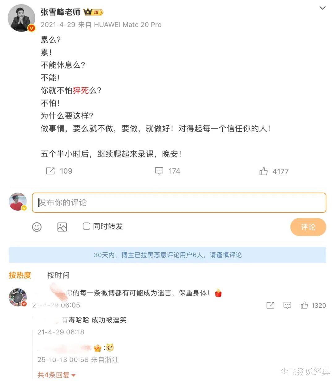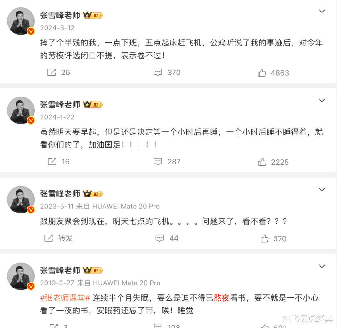 翻看张雪峰的微博,发现他太不注重睡眠了。