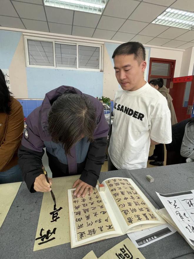 央美实验学校小初高各校区活动现场墨香萦绕,氛围雅致。设有书法创作、经典诵读、艺术赏析等多个体验环节。书法区里,老师们挥毫泼墨,楷书端庄工整、行书飘逸洒脱,笔锋起落间尽显汉字韵律之美;经典诵读环节,大家声情并茂地品读诗文典籍,让书香浸润心灵;艺术赏析交流中,老师们分享创作心得与美育感悟老师们铺展宣纸、研磨蘸墨,笔锋流转间尽显汉字韵味。活动现场墨香氤氲,碰撞出教学与艺术融合的灵感火花。