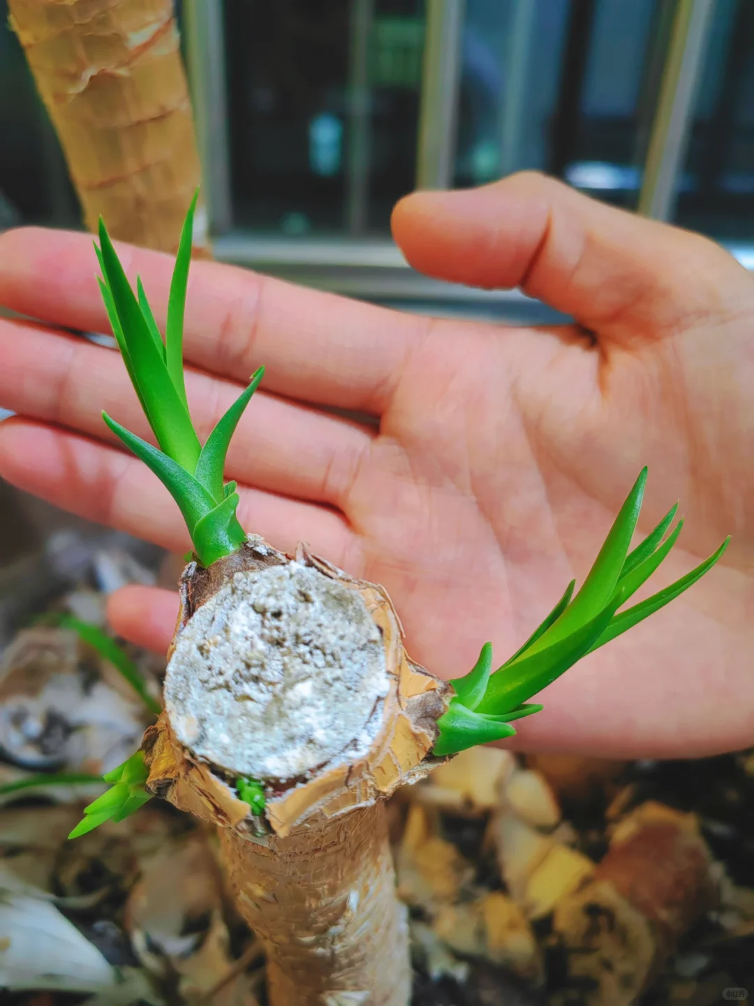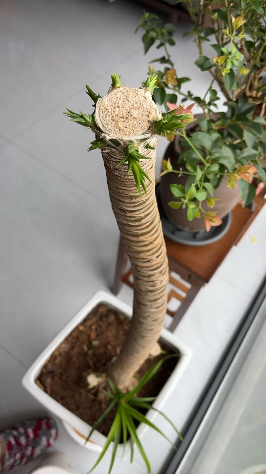 然后遵循龙血树的生长习性,好好的养护,这样很快就能在顶端憋出新芽,在一到两个月内,让龙血树变成多头植株。