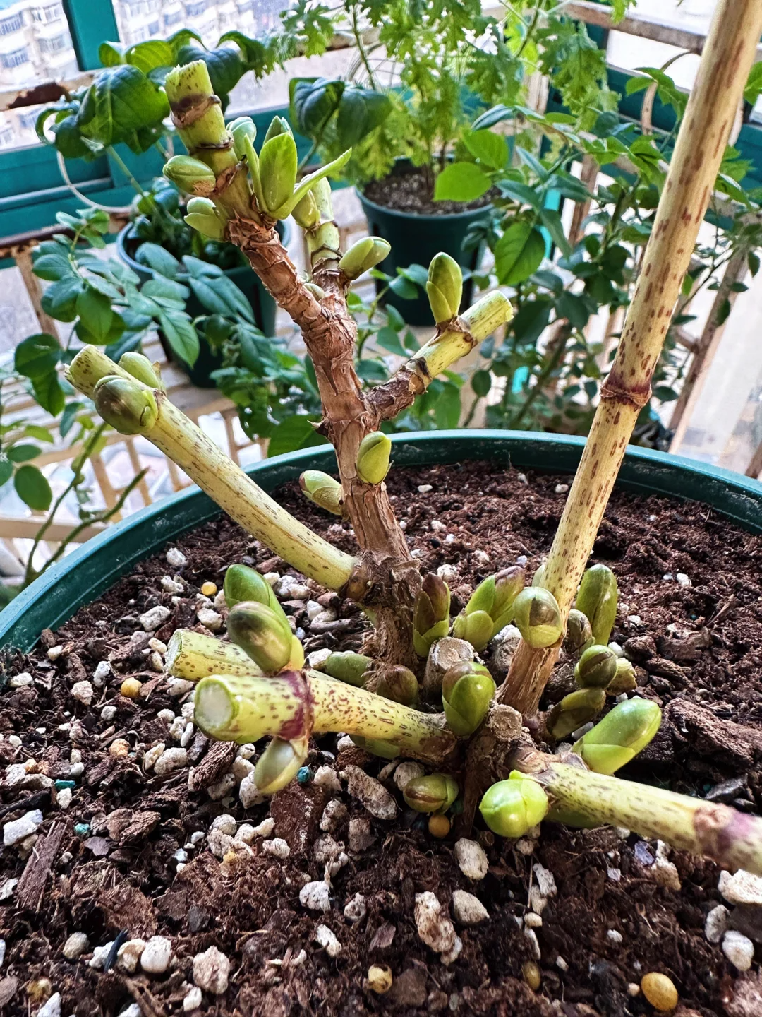 建议,不管是养在室内还是养在室外,环境温度低于15度就要立马剪掉大部分的侧枝,只保留主干和主干相连的部分侧枝。