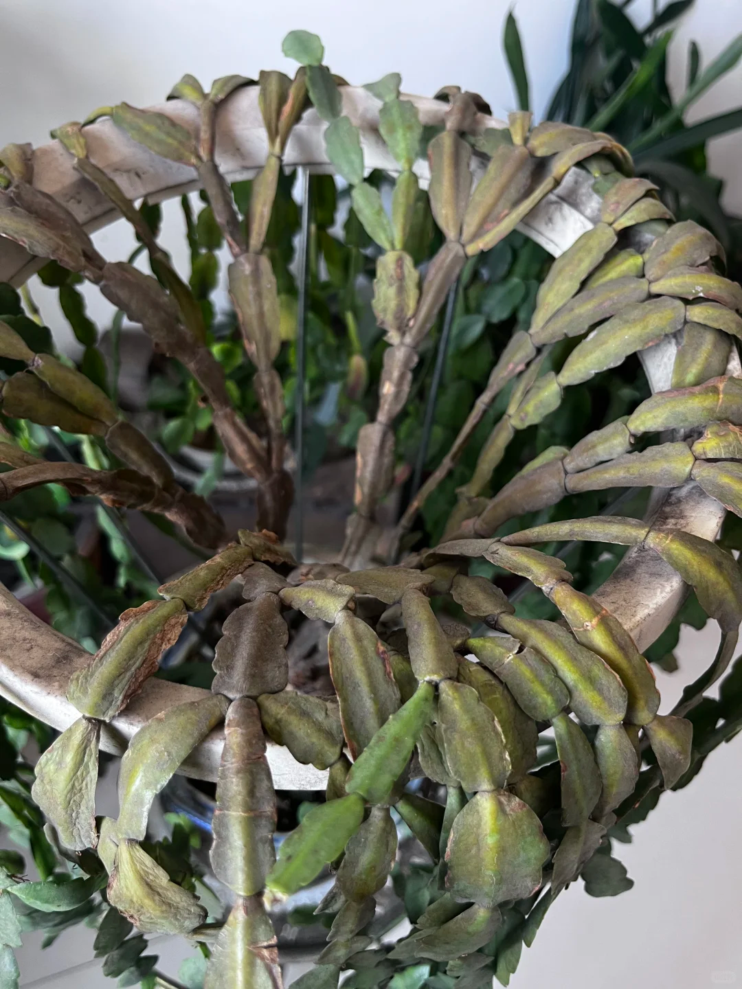 如果你家的蟹爪兰是这样,建议直接“剃头”,顺着植株的习性“从头开始养”,说不定元旦还能赶上开花。