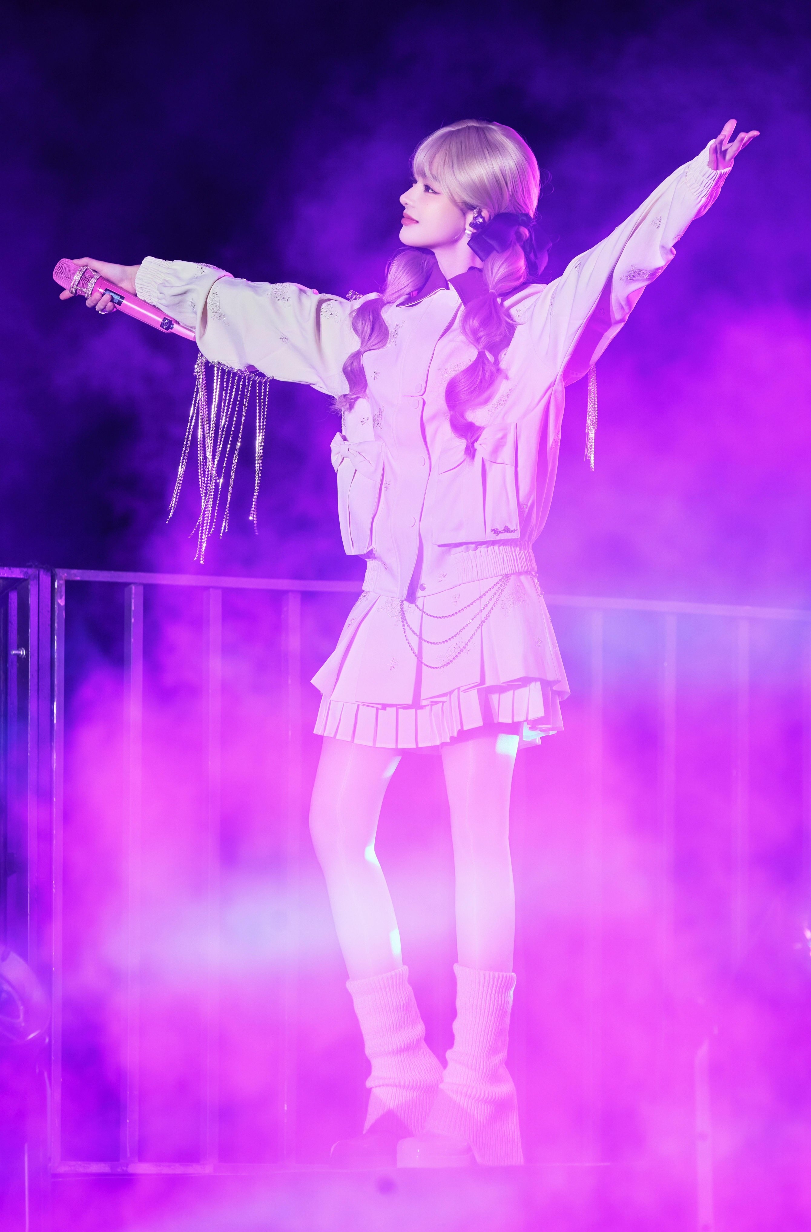 张淼怡,西装裙搭配波点丝袜,可少女可优雅。张淼怡