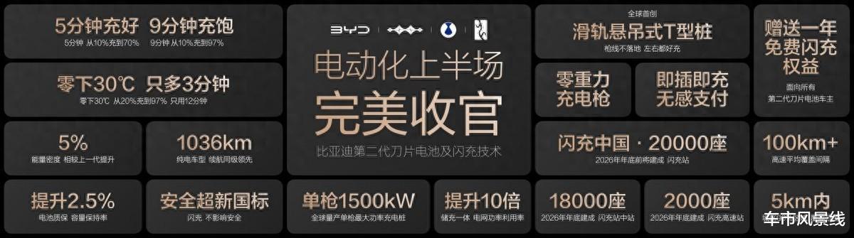 第二代刀片电池及闪充技术的发布,与“闪充中国”战略的落地,标志着 “充电慢”、“低温充电难”这两大世界性难题已被攻克,新能源汽车电动化的“上半场”至此完美收官。