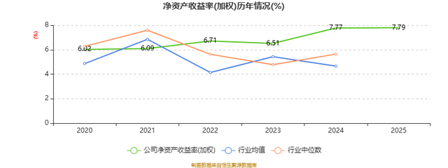 数据显示,2025年公司加权平均净资产收益率为7.79%,较上年同期上升0.02个百分点。