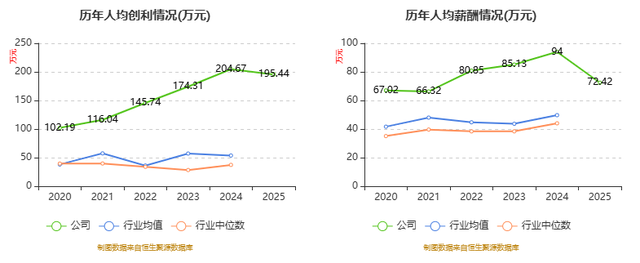 截至2025年末,公司员工总数为733人,同比增加10.23%,人均创收402.79万元,人均创利195.44万元,人均薪酬72.42万元,较上年同期分别变化-8.51%、-4.51%、-22.96%。