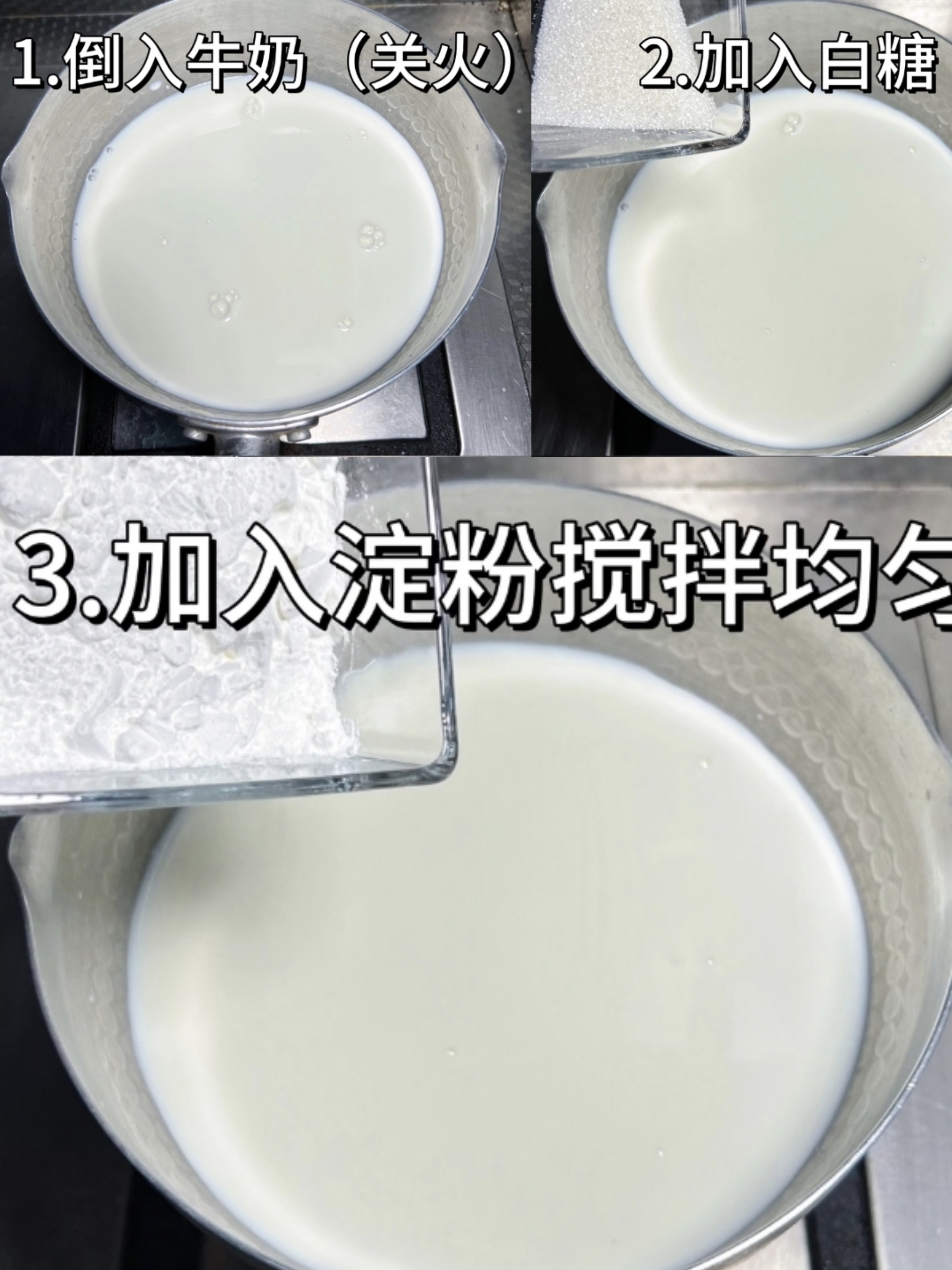 开始制作时,先找一个干净的小奶锅,将500克纯牛奶全部倒入锅中,接着加入40克白糖和60克玉米淀粉。这一步的关键是要在开火前将所有食材搅拌均匀,避免淀粉遇热后结块,影响最终的口感。用硅胶刮刀或者木勺顺着一个方向轻轻搅拌,直到锅里的液体变得顺滑,看不到任何白色的淀粉颗粒,这是成功的第一步。
