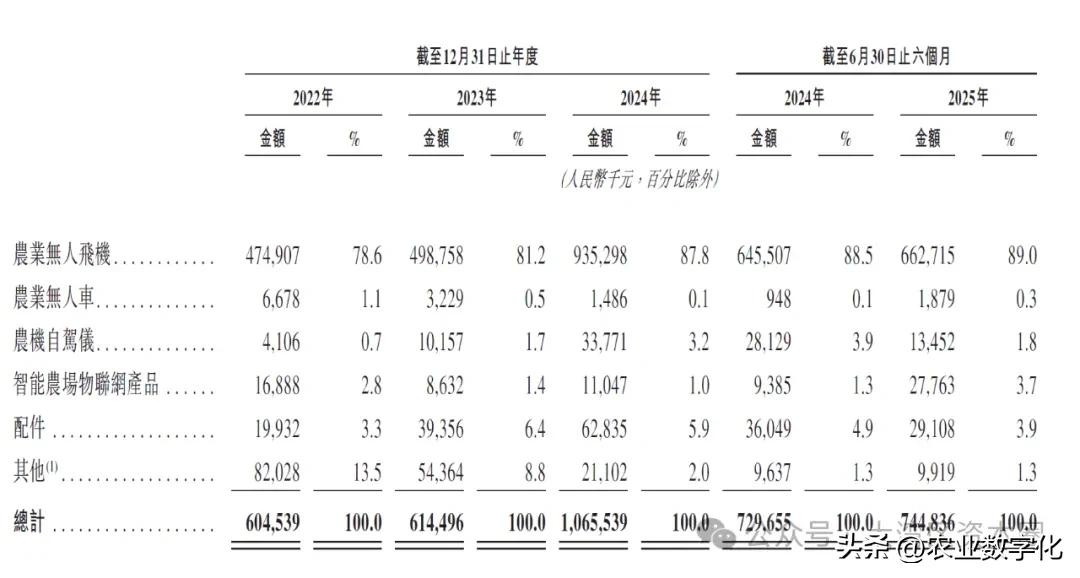公司在2022年-2025年6月营业收入分别为6.05亿元、6.14亿元、10.66亿元、7.45亿元,其中农业无人机占比最大,还在不断提升,2025年6月已经接近90%。