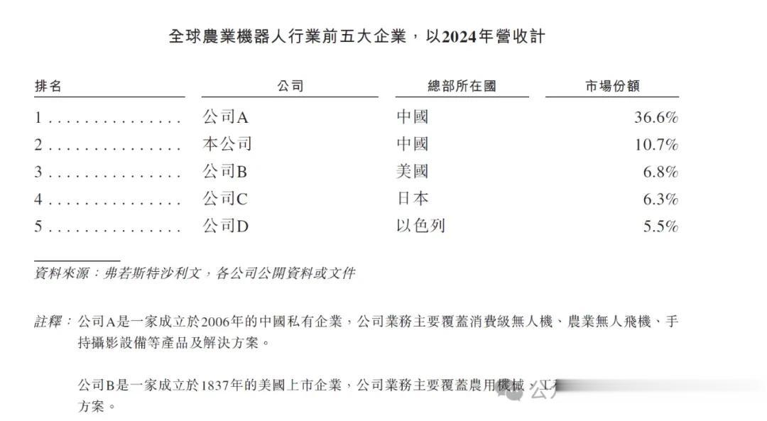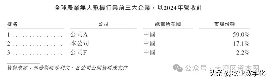根据弗若斯特沙利文报告,以2024年营收入计,极飞科技全球排名第二,市场份额为10.7%。排名第一的为深圳大疆,市场份额为36.6%。