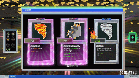 在pve模式下,玩家通过击杀敌人,升级武器、获得属性加成以及强化椅子的局外升级,让游戏中的随机性变得丰富起来。就属性升级而言,一方面是冰冻、燃烧、毒素等子弹属性加成,另一方面,则是人物移速、人物伤害等角色加成。当玩家将某一属性升至5级,将会产生质的飞跃。