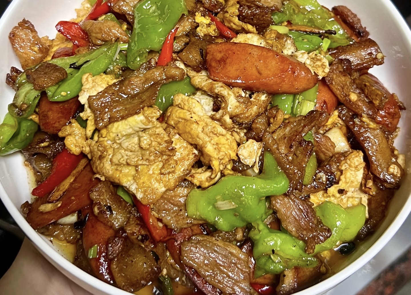 农家一碗香,又称“荷包蛋炒肉”,是一道经典的家常菜。它将鸡蛋的醇香、猪肉的鲜嫩与青椒的微辣完美融合,做法简单却滋味浓郁,是餐桌上最受欢迎的下饭神器之一。