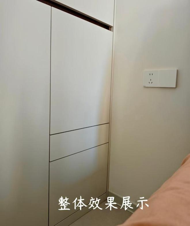 网友@城巴佬说:我家床和柜子之间的距离不到40公分,放不下床头柜,于是在定制柜子的时候就决定把床头柜隐藏在柜子内。