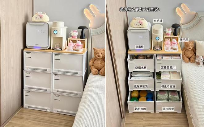 网友@隔壁家老李说:我家是精装房,卧室也不是很大,有了孩子后发现东西太多,没地方做喂养台,床头柜上也根本放不下几样东西。