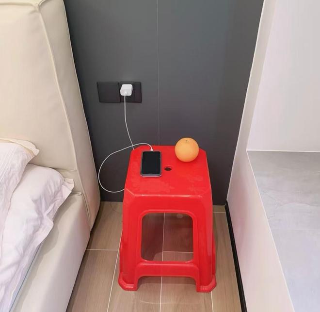 网友@爱吃面条说:刚搬到新家的时候没有买床头柜,就先放了一个塑料凳子在床头,结果用了半年了也没换成正经床头柜,也不打算换了。