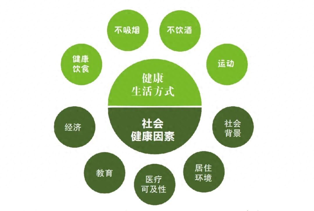 此外,健康社会决定因素也至关重要。这些因素是指在直接导致疾病的生物学因素之外,由资源分配和结构性因素等决定的生活环境对健康的影响。这些因素贯穿个体生命全程,涉及出生、成长、工作、衰老等各个阶段的物质条件、社会关系和政策环境。居住环境佳、成长条件好、就医条件便利会给健康生活提供足够的保障。