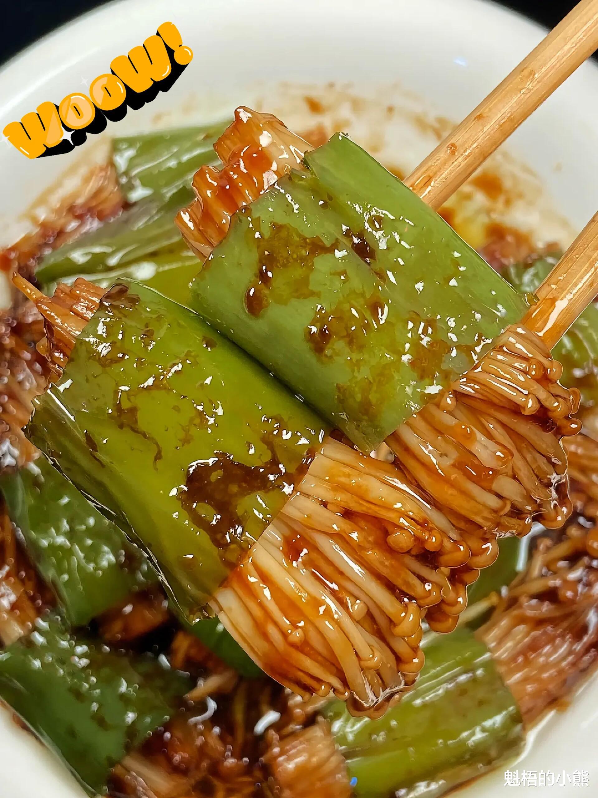 夏天没胃口的时候,就想吃点开胃的、有味的,但又不想太油腻。虎皮青椒金针菇,就是为这种时候准备的——青椒煎出虎皮,皱皱的皮裹着酱汁,里面塞满吸汁的金针菇,一口下去,先是酱香浓郁,接着是青椒的微辣,最后是金针菇的爽滑。明明是素菜,却比肉还好吃。没胃口的、想减肥又馋重口味的、不知道吃啥的,都给我去做。