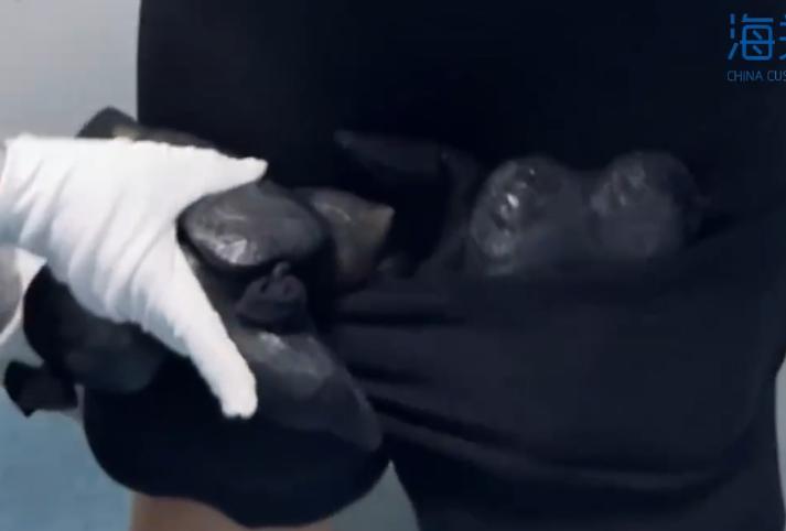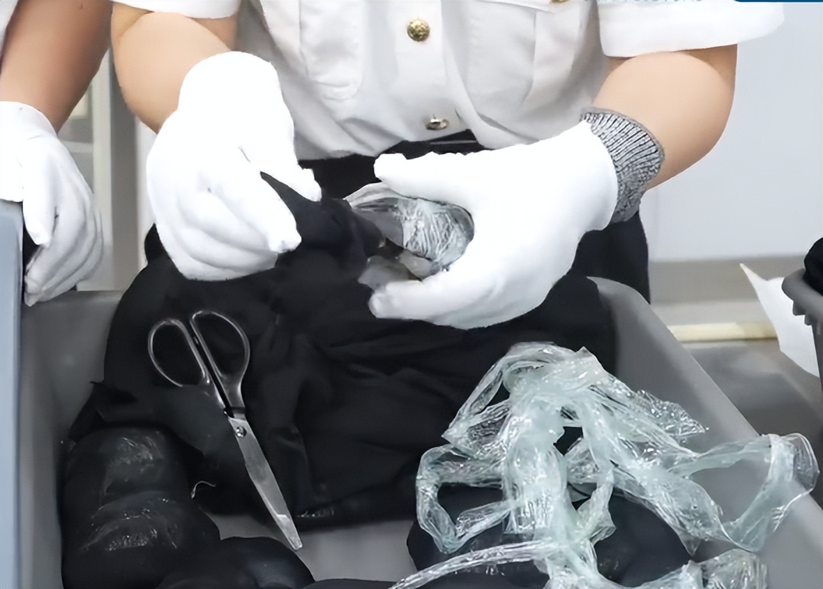这未知的东西还在轻微的蠕动,看的人浑身起鸡皮疙瘩,应该是女子藏匿了活体想偷偷带入境。