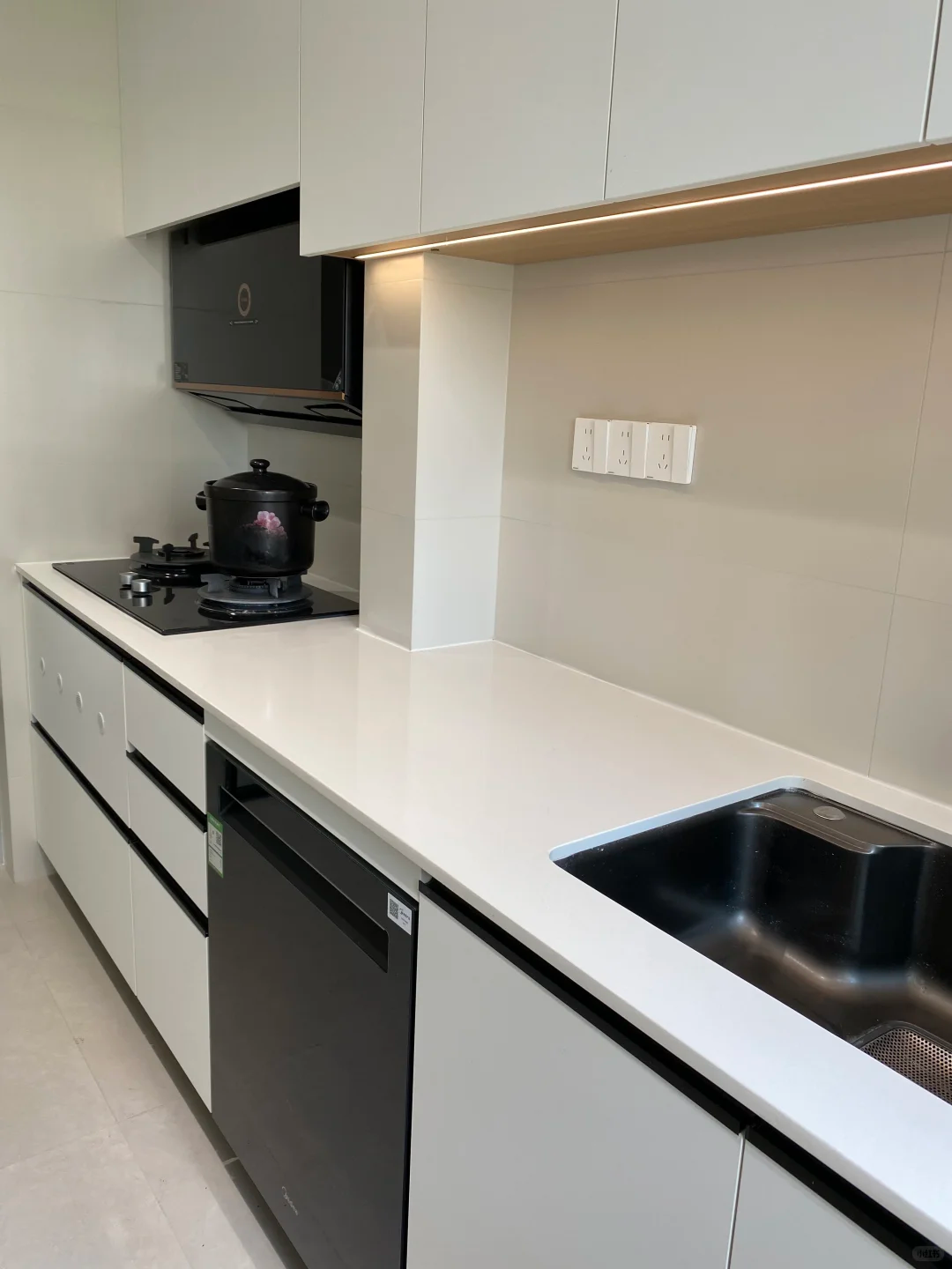 网友@马姨 的分享:我家就没做挡水条,很多人都说我不做挡水条,以后水都会流到柜子里,我家之前做的挡水条,改流还是流,不如用点好胶,而且没有挡水条还更高级了。