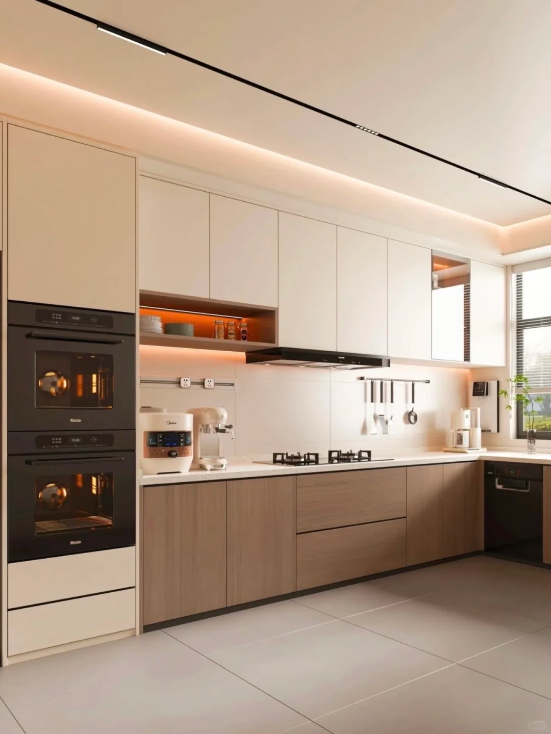 现在不做明装拉手的设计也比较流行,而且不做拉手的设计也让空间显得更加的整体和高级,另外还没有拉手的边角藏污纳垢的位置,也很方便清理。