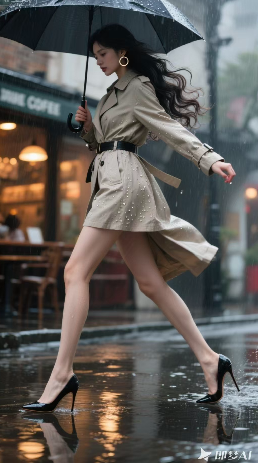 走在都市的街道上,一位身着卡其色风衣、踩着尖头高跟鞋的女性迎面而来。风衣的下摆随风轻扬,高跟鞋踏出清脆而坚定的节奏。她不需要刻意张扬,却已然成为街角最动人的风景。