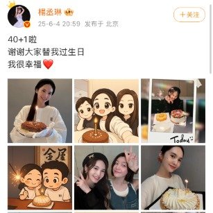 6月4日是杨丞琳41岁生日,她晒出了12张生日照片,其中包括与好友陈妍希的合照,并发文感谢大家的祝福,表示自己很幸福。