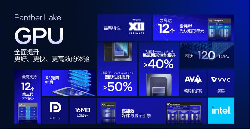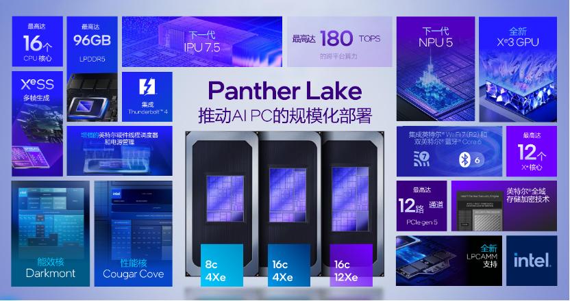 NUC 16 Pro Ultra X7 358H版本的底气,全来自其搭载的英特尔酷睿Ultra X7 358H处理器——这也是它区别于前代机型、实现性能跃升的关键所在。这款基于Panther Lake架构、采用先进制程的处理器,将CPU、GPU、NPU三大核心无缝集成于一体,尤其在图形性能与AI算力上实现了跨越式升级,NPU算力可达50TOPS,平台总算力至高可达180TOPS,让迷你主机也能轻松拥有旗舰级表现。