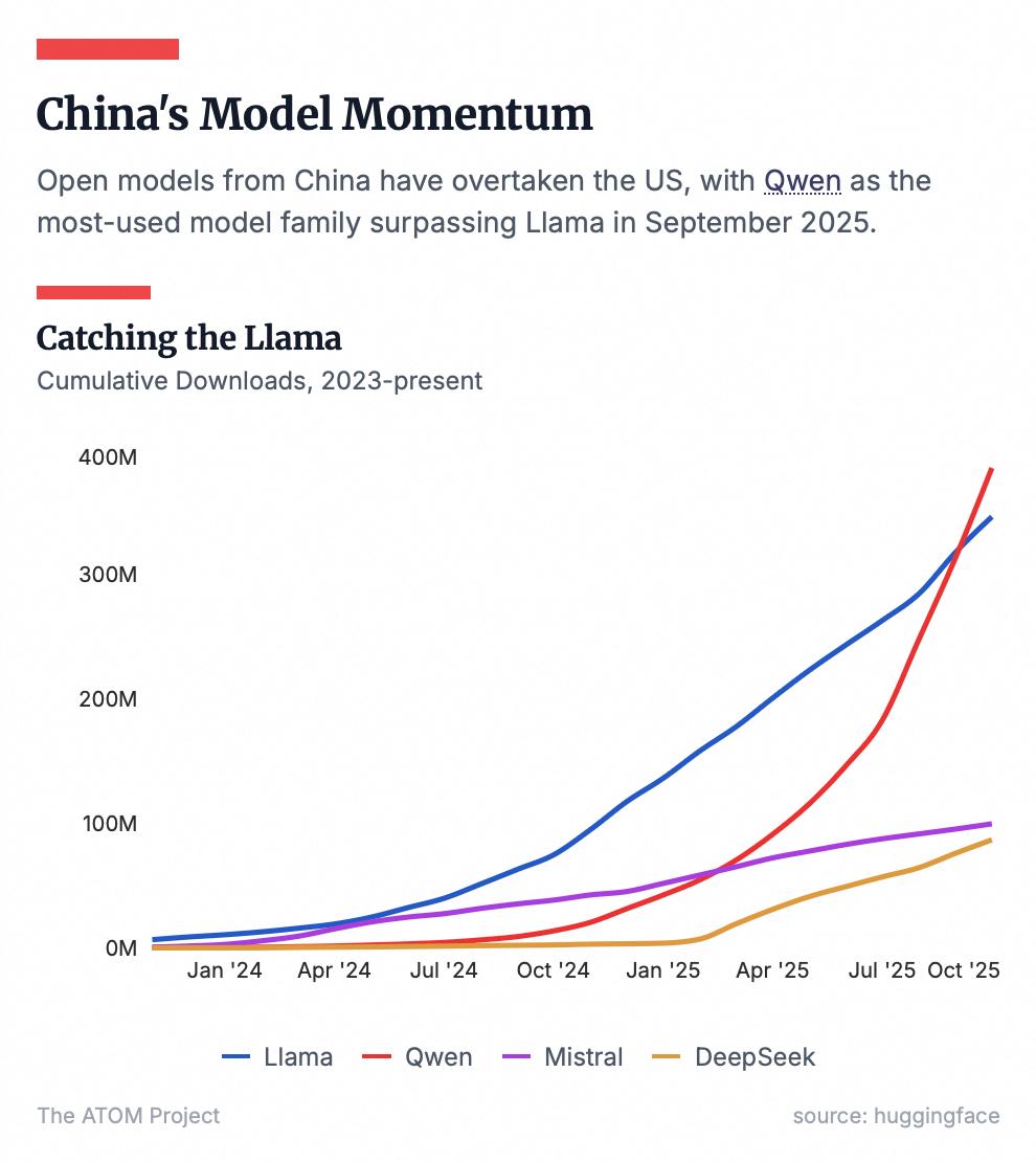 《连线》杂志观察指出,尽管美国OpenAI的GPT-5、谷歌的Gemini 3以及Anthropic的Claude通常得分更高,但阿里千问、DeepSeek等中国模型性能也稳居第一梯队,并且变得越来越受欢迎,“原因在于它们既性能优异,又易于开发者灵活调整和使用”。