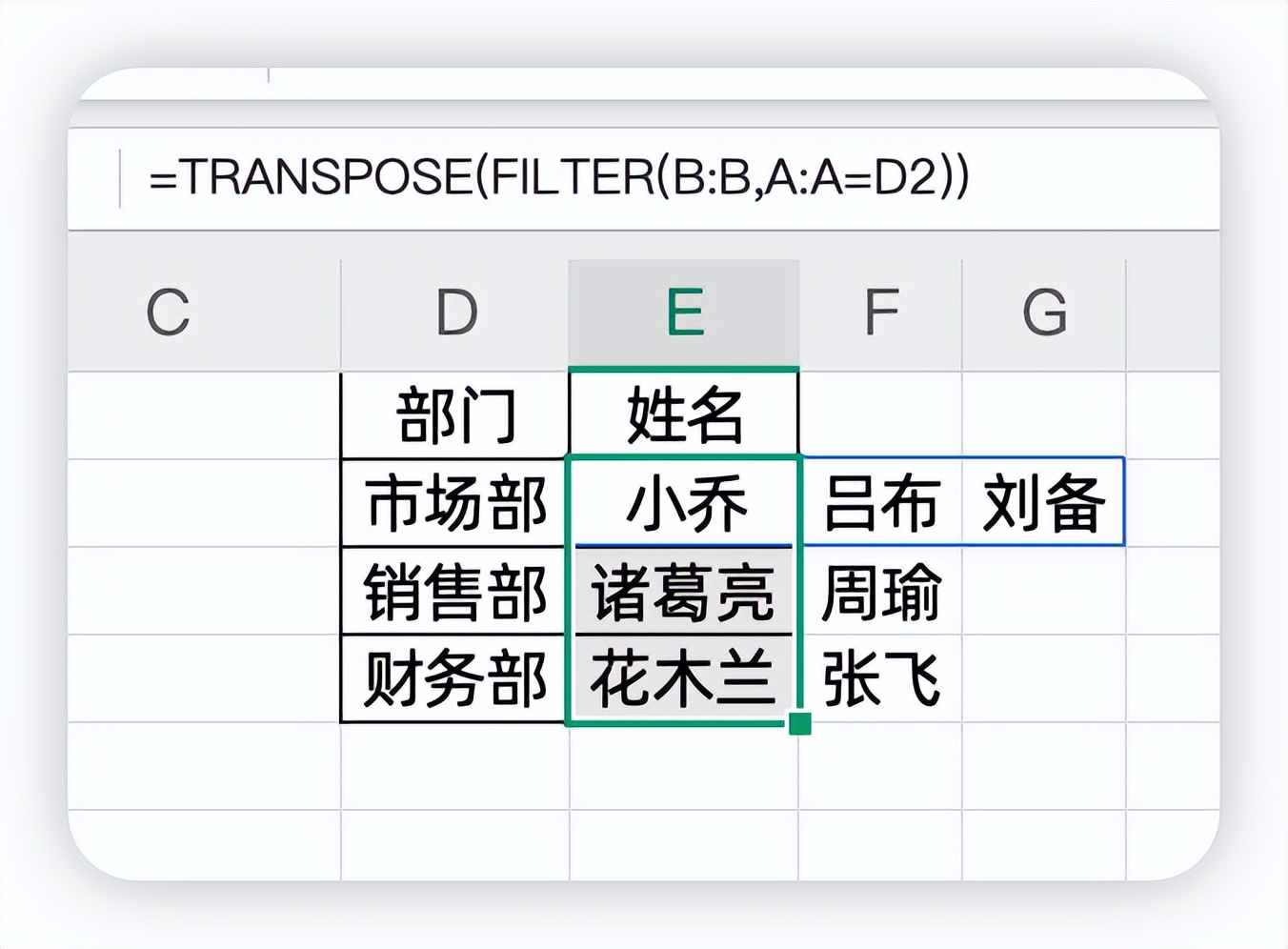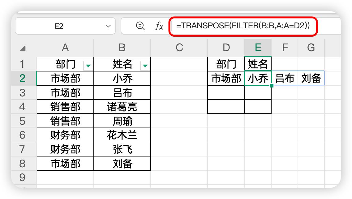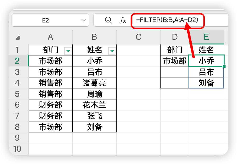 本质,就是去A列里面, 筛选市场部,然后对应B列的结果