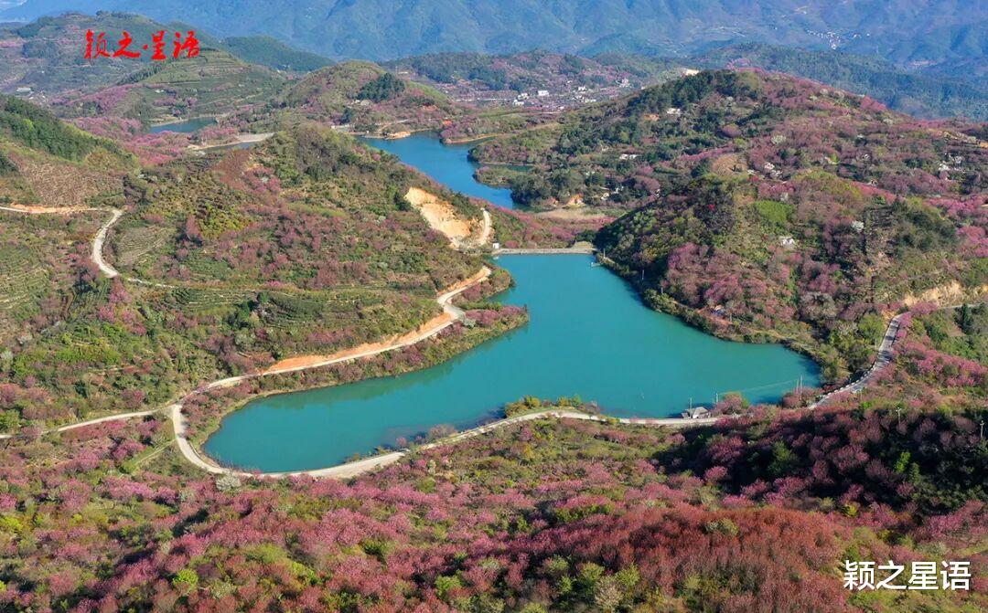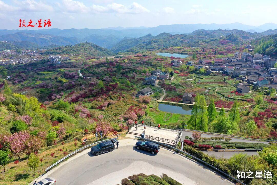 村后的乌岩岭、白岩头、南培岭一带,视野辽阔,漫山遍野,繁樱盛开,粉红惊艳,红枫嫩红,仿佛置身于梦幻的童话世界里。