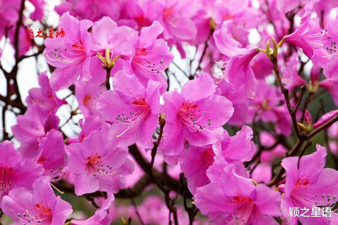 杜鹃花中的极品王者,就是这些华顶杜鹃,每年四月上旬,自由绽放于人迹罕至的高山之上,先开花,后生叶,花朵大而娇艳,紫红色,艳雅美丽,雍容华贵。