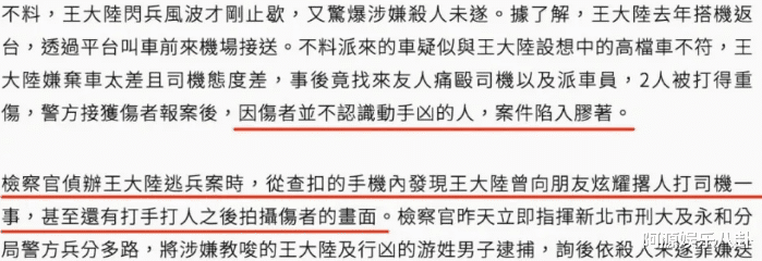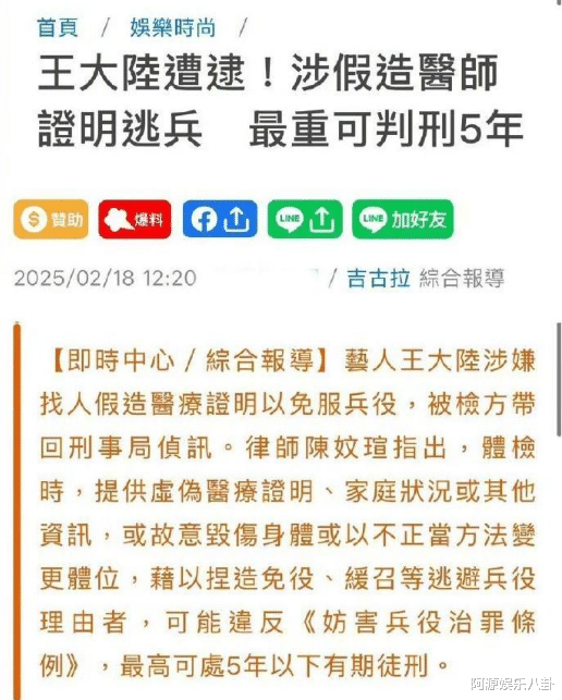 求刑还蛮重。如果真成了。那这几位风光无限的暖男和姐夫真就瞬间阶下囚了哎。事情闹到这个地步。就要回头看到底怎么把这旧案给挖出来的。媒体一调查。非常震惊。居然是因为王大陆的“凡凡式神操作”,导致一桩大规模逃兵役旧案被成功追查。有吃瓜群众一分析,一综合,发现案件破获全靠王大陆。去年王大陆找陈志明造假病历逃兵役,结果这个陈志明在警方调查诈骗案时被抓了。警方破解陈志明手机时发现里面有很多病例造假资料,其中就有王大陆的名字, 于是开始调查逃兵役事件,但一开始是没证据的,案件进展缓慢。但突然!王大陆神操作来了。因为联系不到被抓的陈志明,王大陆以为对方拿了他几百万台币跑路了,于是王大陆找了个朋友替他在警局联系了某刑侦队长,找关系报警了!你敢信?他伪造病历逃兵役犯罪,还敢报警说自己被诈骗了。王大陆还跟朋友说了这么一句话 ↓“我也是可以当兵,可是我不想要他骗我。”还喊话“我先提告,不还钱我找他全家”。非常奇葩又抓马,很符合他看起来不正常的人设。殴打司机事件就像我上面提的那样,也是他自己保存了殴打司机的视频向朋友炫耀,才给了警方现成的证据,王大陆俨然做了警方辅助工作。至于陈柏霖修杰楷他们为啥落马?也是王大陆的功劳。警方通过调查王大陆和陈志明的对话记录发现,陈志明为了拉王大陆这个客户,跟他宣传了一下自己的战绩,说自己成功操作让陈柏霖、修杰楷、Energy还有棒棒堂成员都免除了兵役。这些记录,王大陆都留着呢。于是,这群人都被揪出来为十几年前的逃兵役行为买单了。就在这群人焦头烂额之际,你再看看王大陆。心态不知道有多好。他明明是所有人里身上背的案子最严重的。网友还嘲笑他人傻钱多,是所有艺人里为了逃兵役花钱最多的。