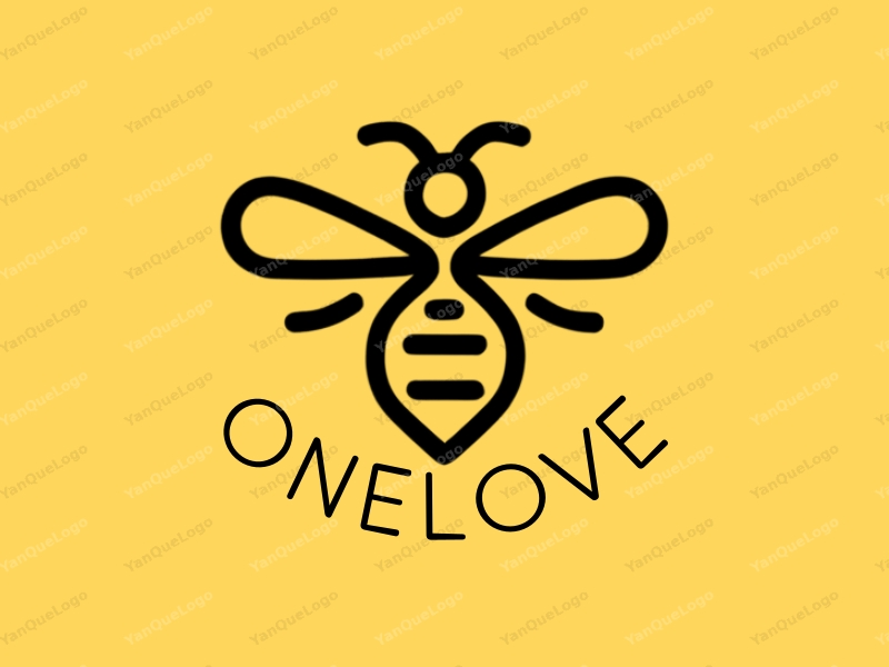 A minimalist monolinevectorlogo of a bee, symbolizing community and love. The icon is constructed from simple geometric shapes: a perfect circle for the head, oval wings, and a striped body. Thick, uniform black lines with roundedcapson a warm yellow background. Perfectly symmetrical composition. Typography: "ONE LOVE" in a modern, thin sans-serif font, slightly curved below the bee. Flat design, no shading, vector illustration style.(一只蜜蜂的极简单线矢量 Logo,象征社区与爱。图标由简单的几何形状构成:圆形的头、椭圆的翅膀和条纹身体。暖黄色背景上呈现粗细一致的圆头黑线。完美的对称构图。排版:“ONE LOVE”采用现代细无衬线字体,微弧形排列在蜜蜂下方。扁平设计,无阴影,矢量插画风格。)