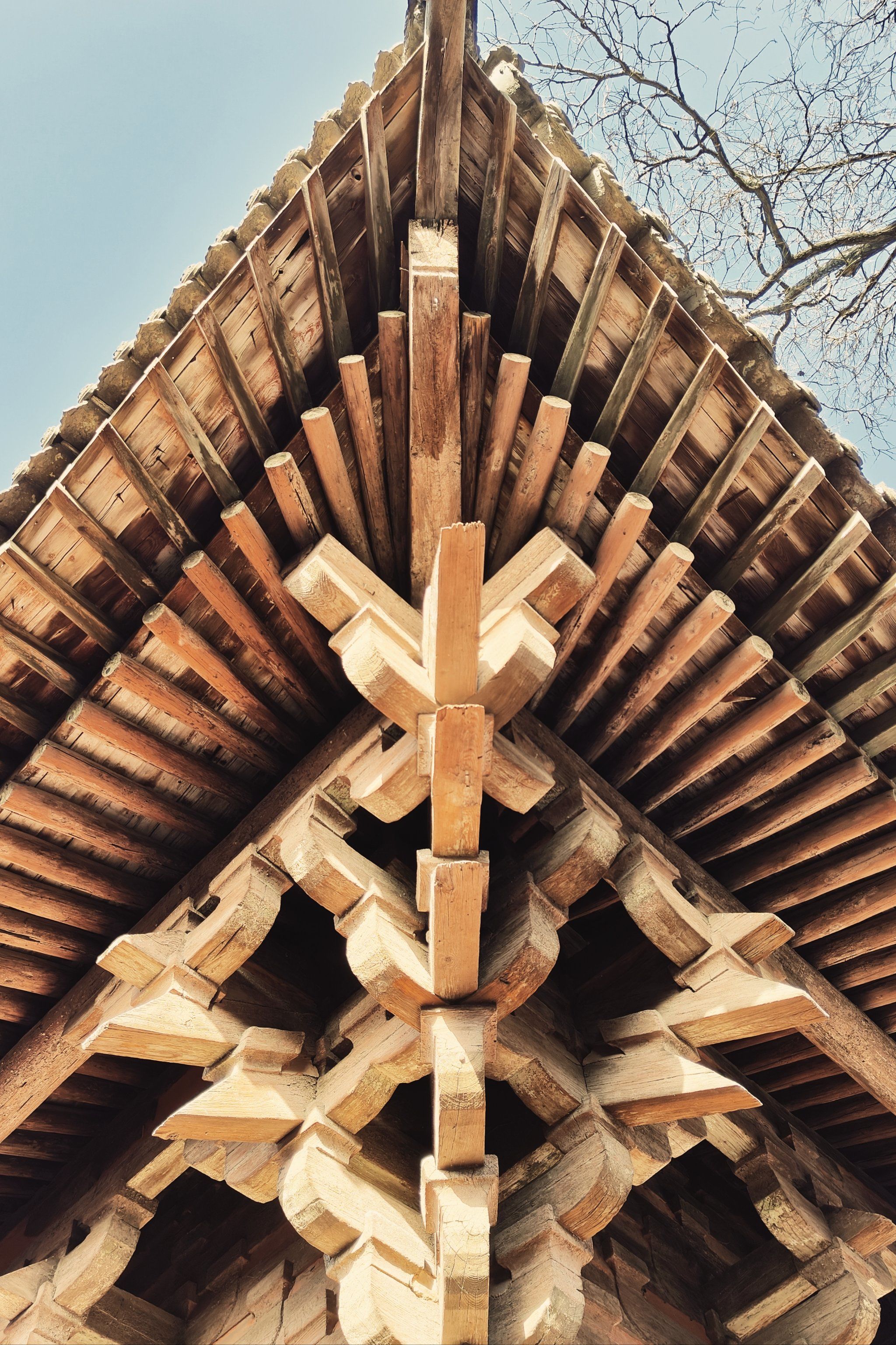 清晨7:00(游客未至),随郝大爷测“斗拱变形度”——他用特制卡尺测量栌斗倾斜角度,数据同步上传古建监测平台;