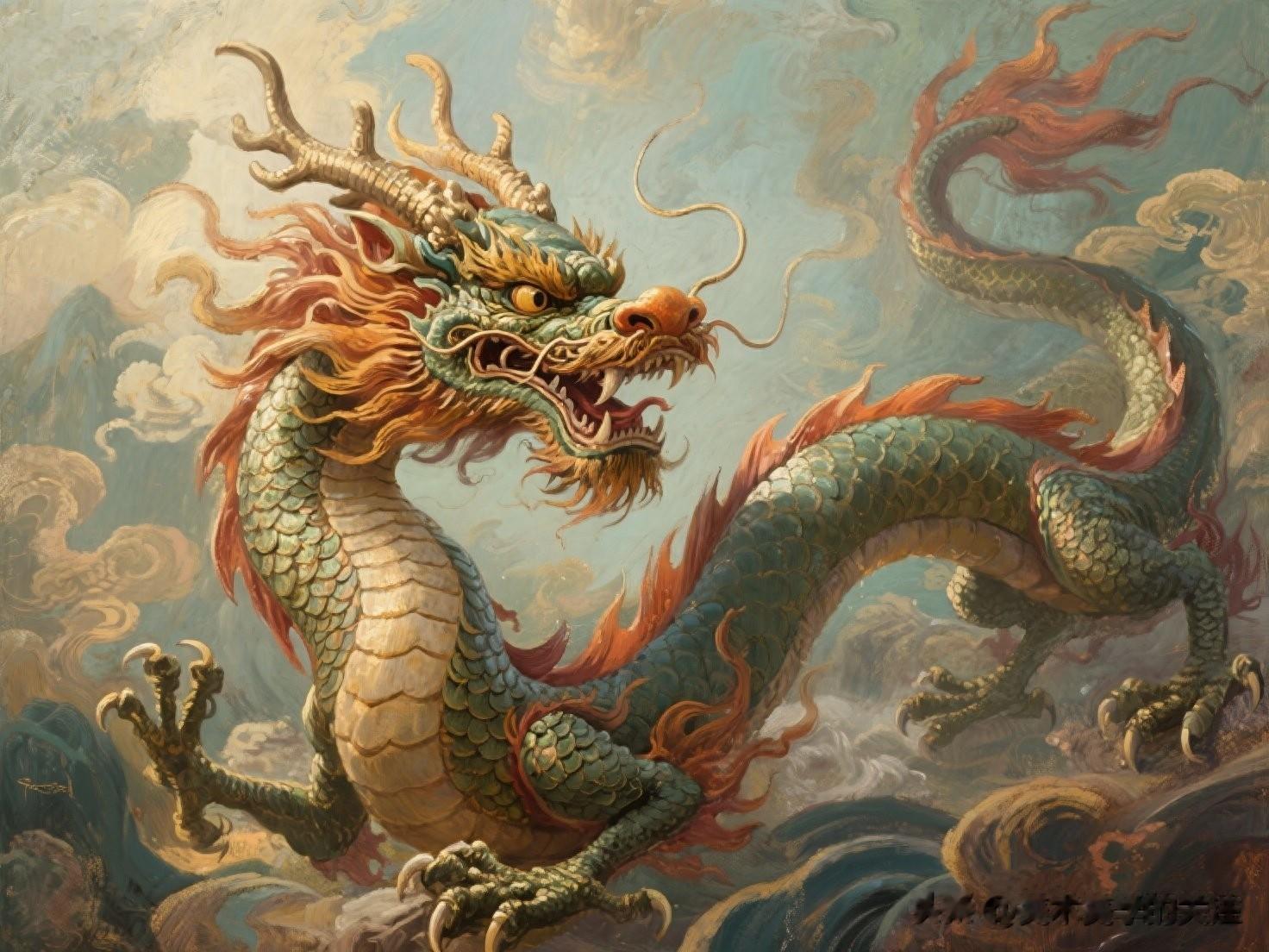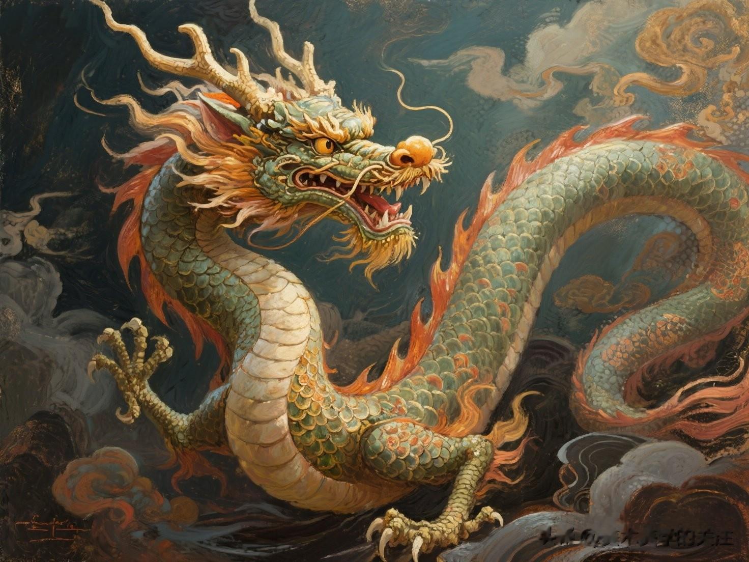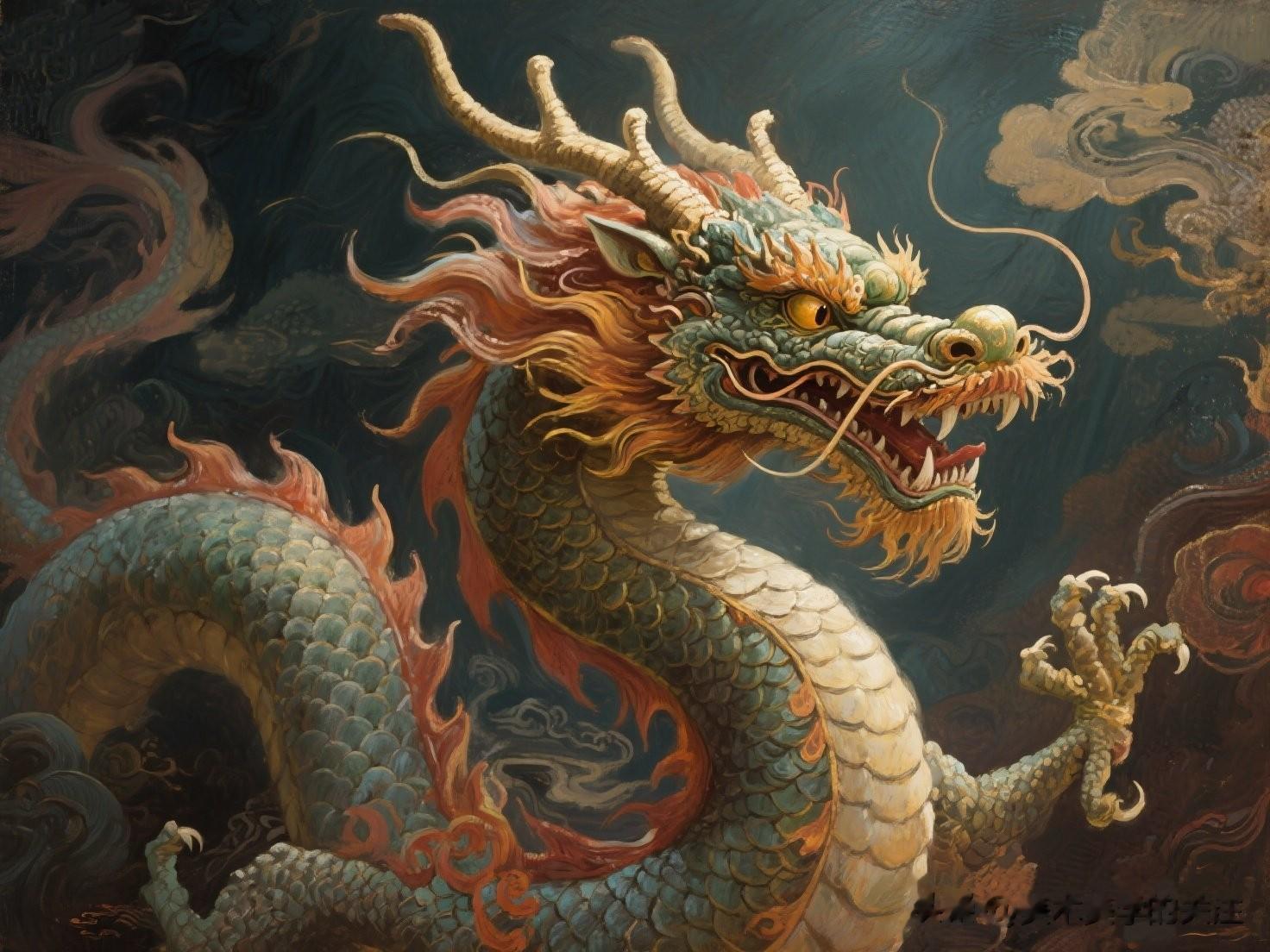 在当今全球化的时代,这幅油画也有着特殊的意义。它像是一张文化名片,向世界展示了中国传统文化的独特魅力。就像龙在世界文化中成为中国的一个标志性符号一样,这幅油画也能够让更多的人了解中国文化中的龙文化。同时,它也激励着中华儿女传承和弘扬龙的精神,在面对各种挑战时,像龙一样充满力量、勇往直前。