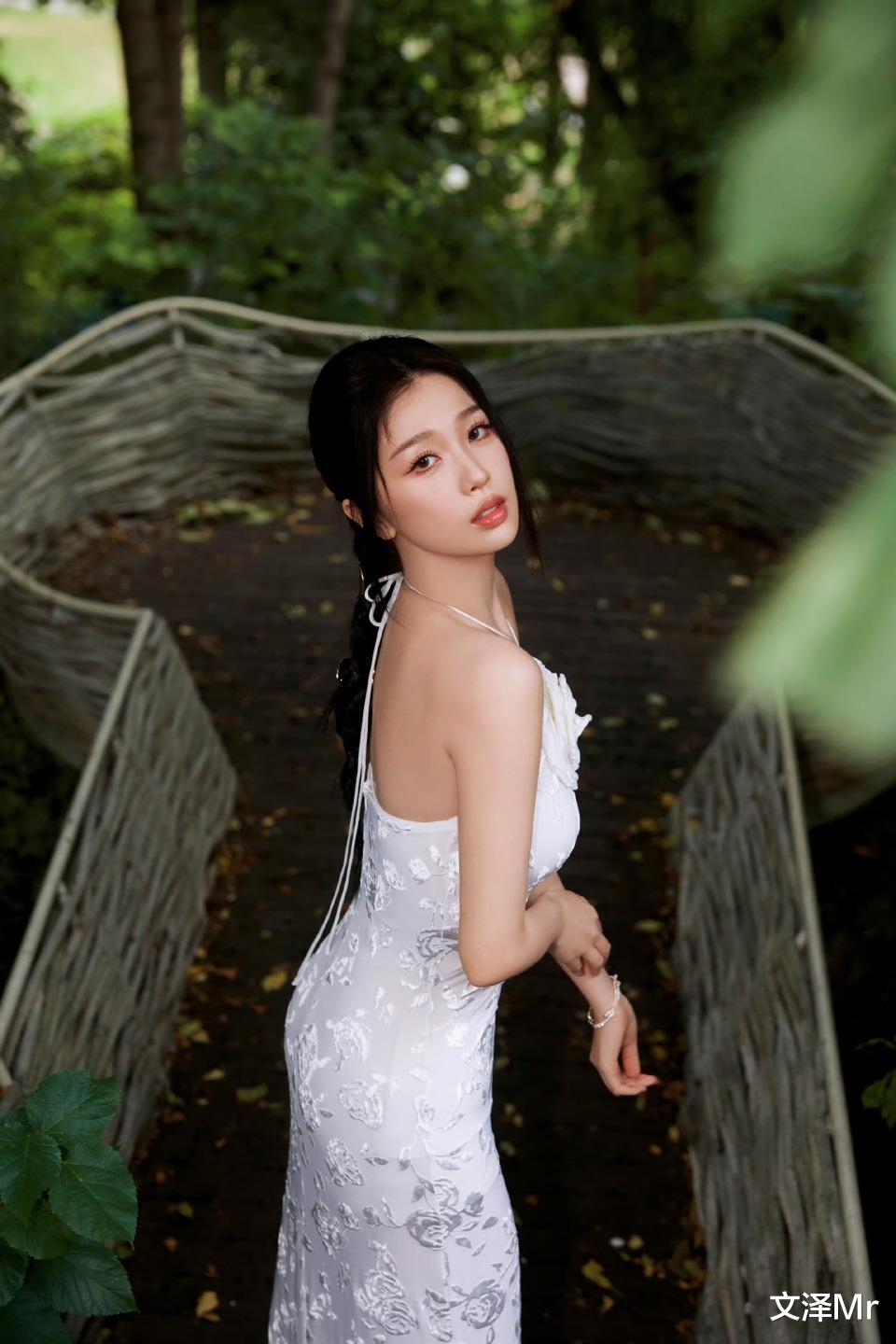 当白绣球的碎光落在她肩颈的曲线里,虞书欣又一次把 “甜” 拆成了 100 种写法 —— 这组被粉丝疯传的花园写真,像把盛夏的柔雾揉进了她的骨相里。