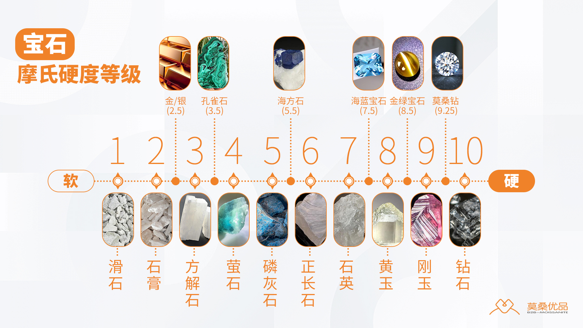 1. 噱头套路:宣称“莫桑钻硬度10,和钻石一样”“高硬度莫桑钻,永不磨损”,纯属虚假宣传。莫桑钻硬度固定为9.25,永远达不到钻石的硬度,而且脆性较强,不可能“永不磨损”,这类商家大多是为了抬高价格,售卖低品质莫桑钻。