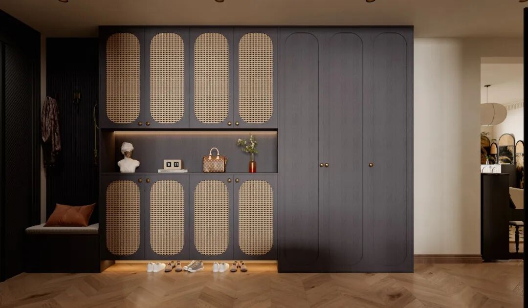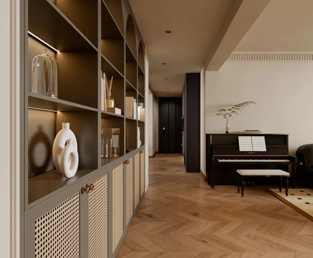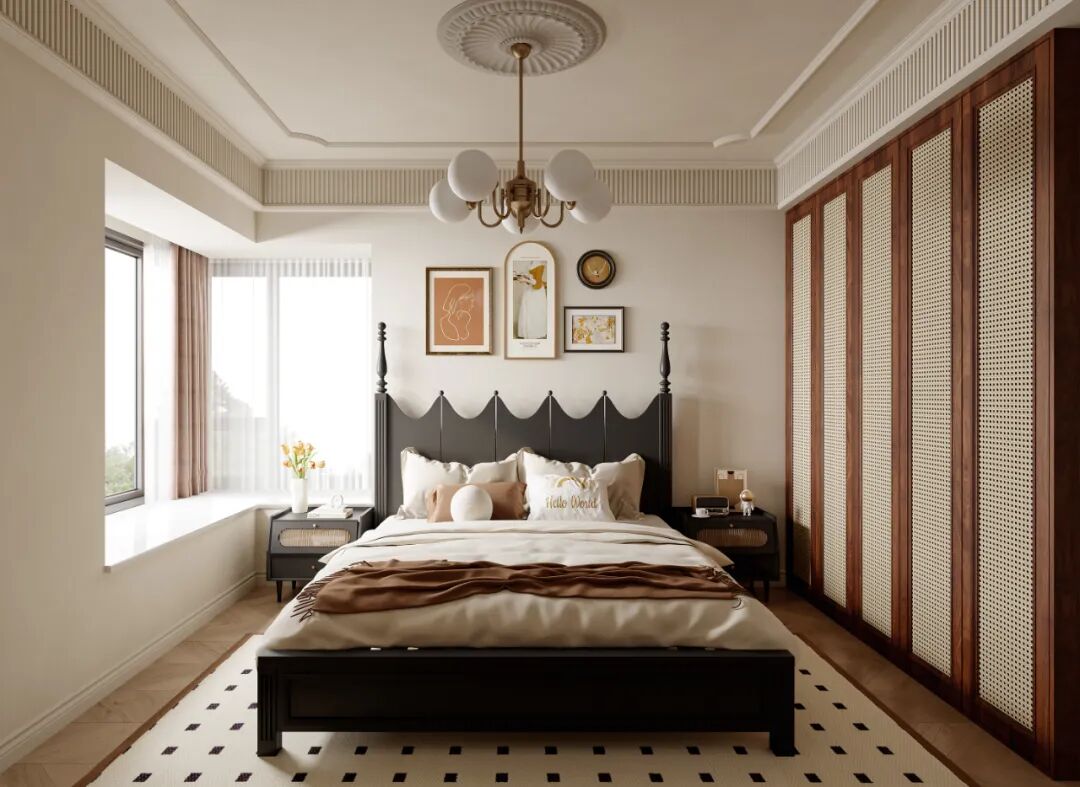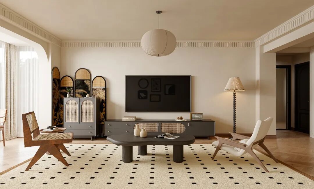 设计要点/色彩“暖棕+米白”打底:用暖棕色、米白色做基础色调,再点缀黑色、复古红,高级又不容易出错,材质“藤编+木质+皮革”组合:藤编透气复古,木质温暖自然,皮革质感高级,这三者搭配,中古风的韵味直接焊死。