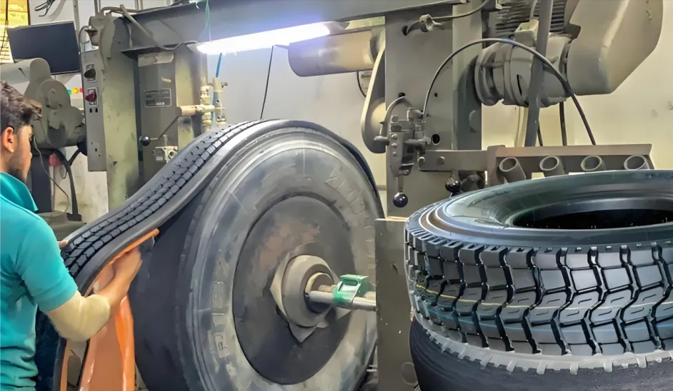 轮胎翻新:通过机器对可翻新轮胎进行表面或全面翻新,使其重新可用。