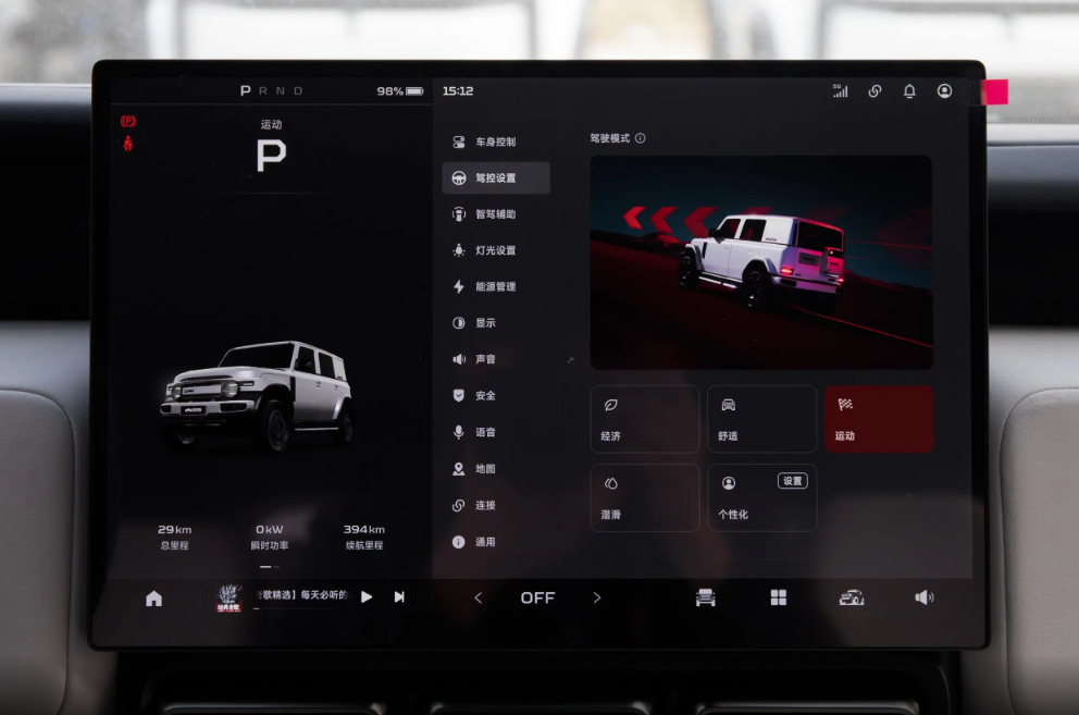 内饰部分,iCAR V23也采用硬朗的设计风格,不过它也使用了很多软质材料装饰,让消费者得到不错的触觉感受和视觉感受。值得一提的是,大家不要觉得iCAR V23采用硬派越野造型,智能化表现就差。实际上这款车型还标配了15.4英寸的高清中控屏,支持目前各种主流的智能互联功能,可以给人不错的智能化体验。在高通骁龙8155芯片的支持下, 这款车型的中控系统流畅性也很不错,可以满足大部分普通消费者的使用需求。
