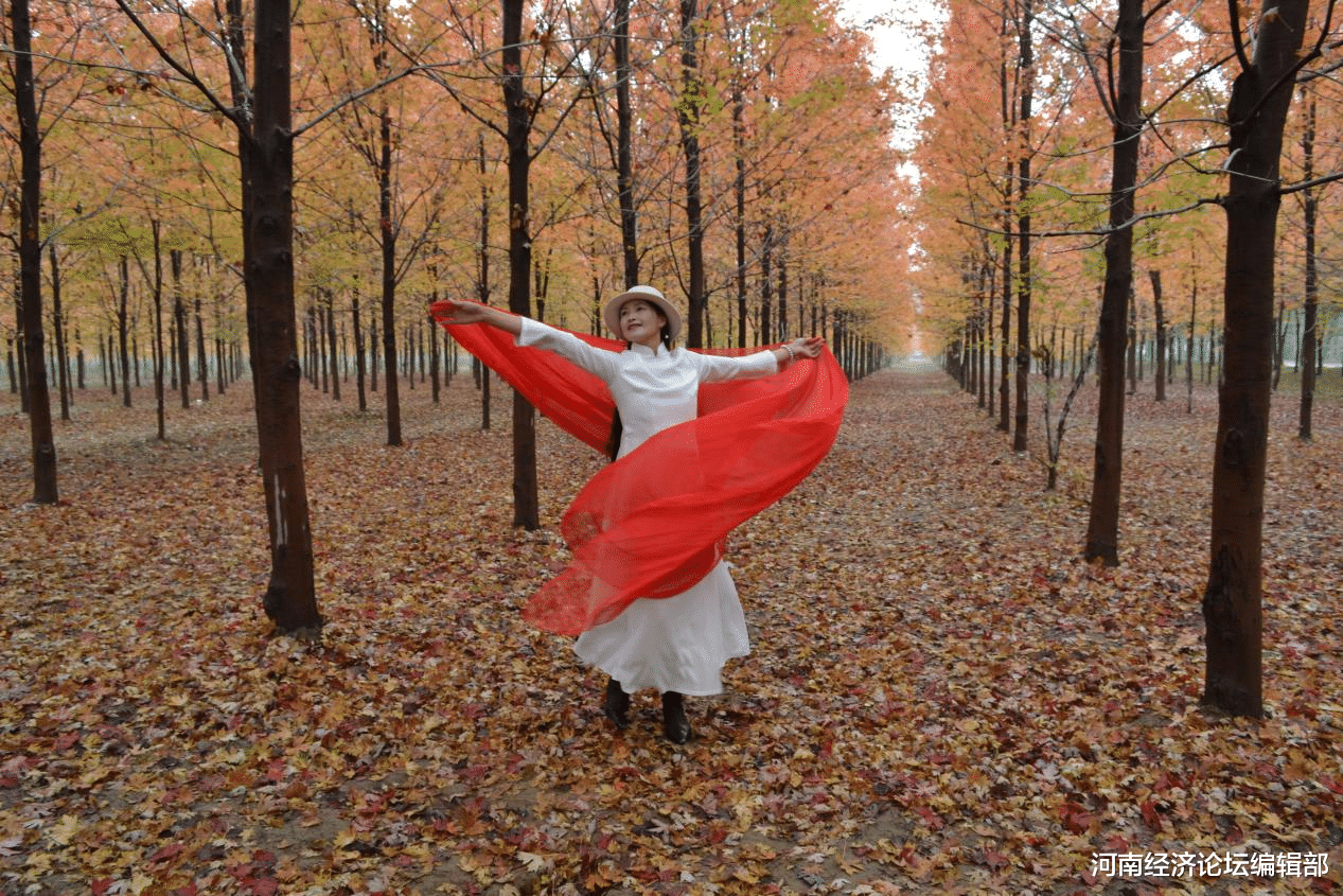 影视家协会的王国胜则架起无人机,俯瞰枫林,如红色锦缎,绘就故道的壮丽,不禁感慨道:“以前拍家乡的景色都是站在地面仰拍,自从用上航拍器,才知道咱民权还有这么大气磅礴的景致!俯瞰申甘林带的枫叶,像铺了层红地毯,跟蜿蜒的故道交织在一起,这哪是平时站在树下能瞅见的?咱县这几年搞生态建设可不是白干的,那成片的绿、满眼的红,都是实打实的成果,拍出来谁看了不夸一句‘民权真中’!”
