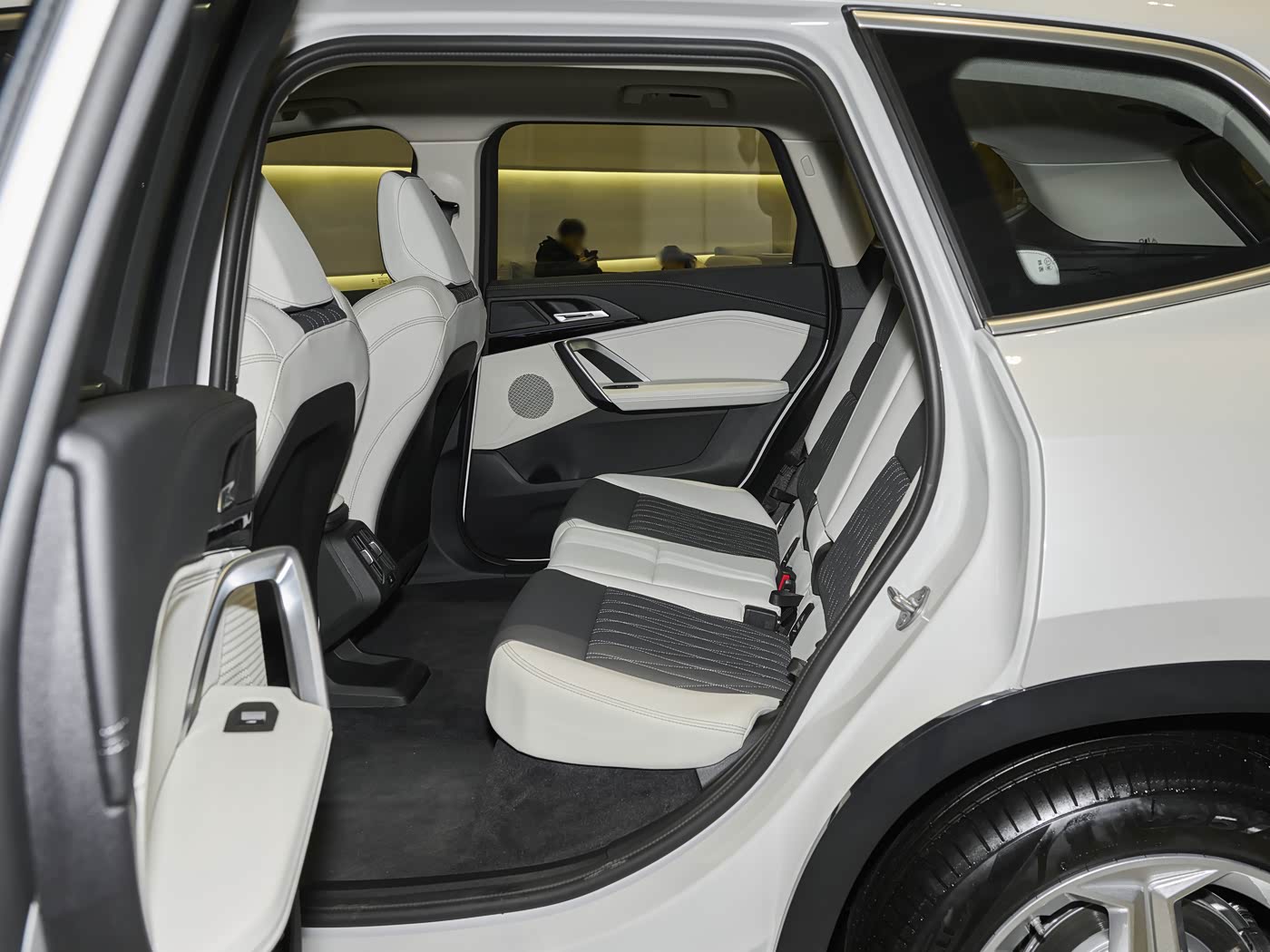 宝马iX1虽然是一台紧凑型SUV,但它的后排空间却非常大。先看数据,它的长宽高为4616/1845/1641mm,轴距为2802mm,这个数据对于一台紧凑型SUV来说就非常不错了。另外,燃油版宝马X1的卖点之一同样是空间,因此iX1也延续了这一优势。