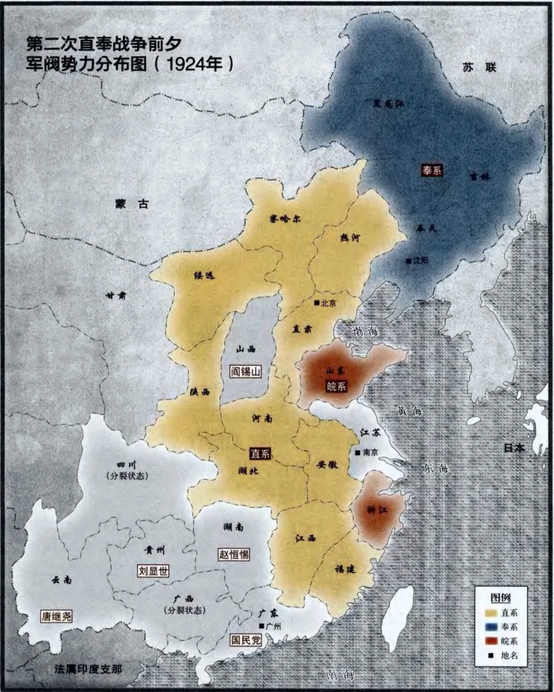 此后几年,直皖奉三家打来打去,顾不上南方。陆荣廷趁机向广东扩张,唐继尧向四川扩张,并以滇、川、黔、鄂、豫、陕、湘、闽八省联军总司令自命,嚣张到了极点。