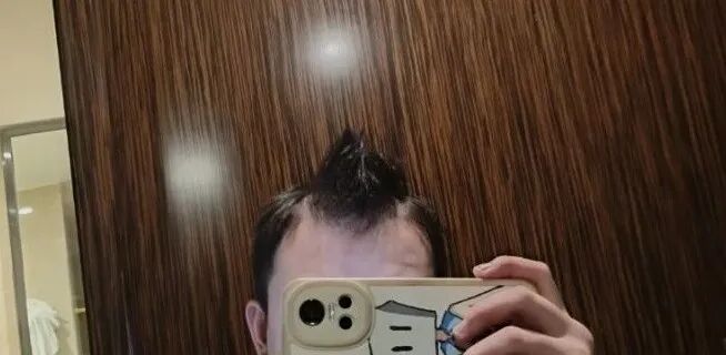 3.一觉醒来,头发塌了,看起来像头缺了一块一样。