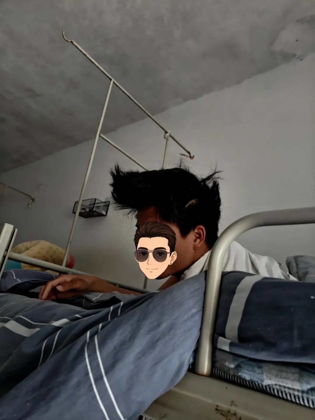 15.不得不说,这哥们把头发睡得不错!