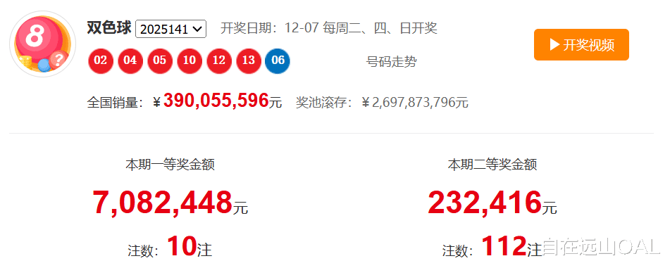 红球:02、04、05、10、12、13 | 蓝球:06