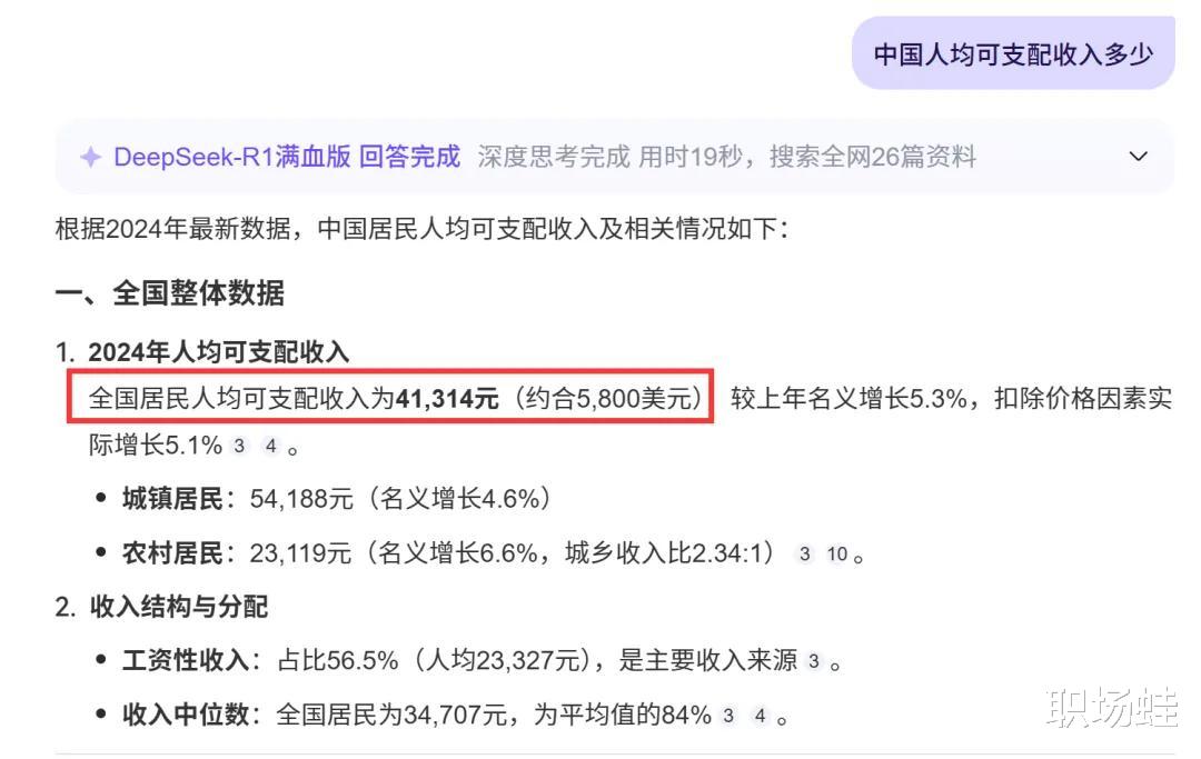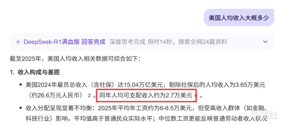 无论你在美国混得多么差,我在中国多么安静做美男子,或者她在什么高科技行业,以及他去农田里耕地,谁都影响不了美国的人均可支配收入在2万7千美元的样子,不到3万美金,也影响不了中国人均可支配收入4万1千元人民币出头,折合美元大约5800元。